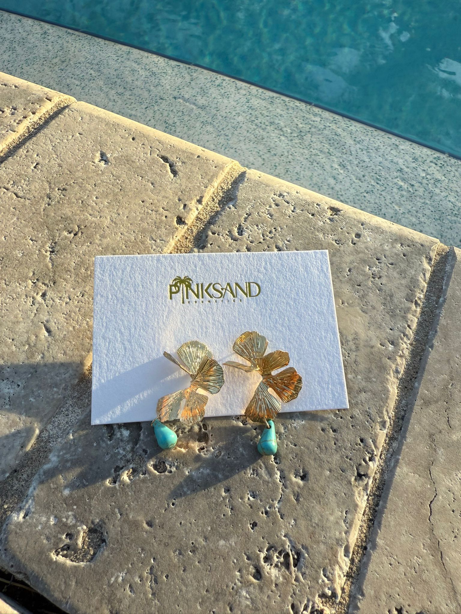 Add a touch of tropical elegance to your ensemble with the Paradise Petals Earrings. These exquisite earrings feature delicately crafted golden petals that resemble exotic blossoms, finished with a vibrant turquoise teardrop charm for a pop of color. Perfect for making a statement, these earrings bring a hint of paradise to any outfit, effortlessly blending sophistication with a bohemian flair. Lightweight and versatile, the Paradise Petals are ideal for beach days, brunches, or evenings out. Embrace the island spirit with these unique, nature-inspired accessories!