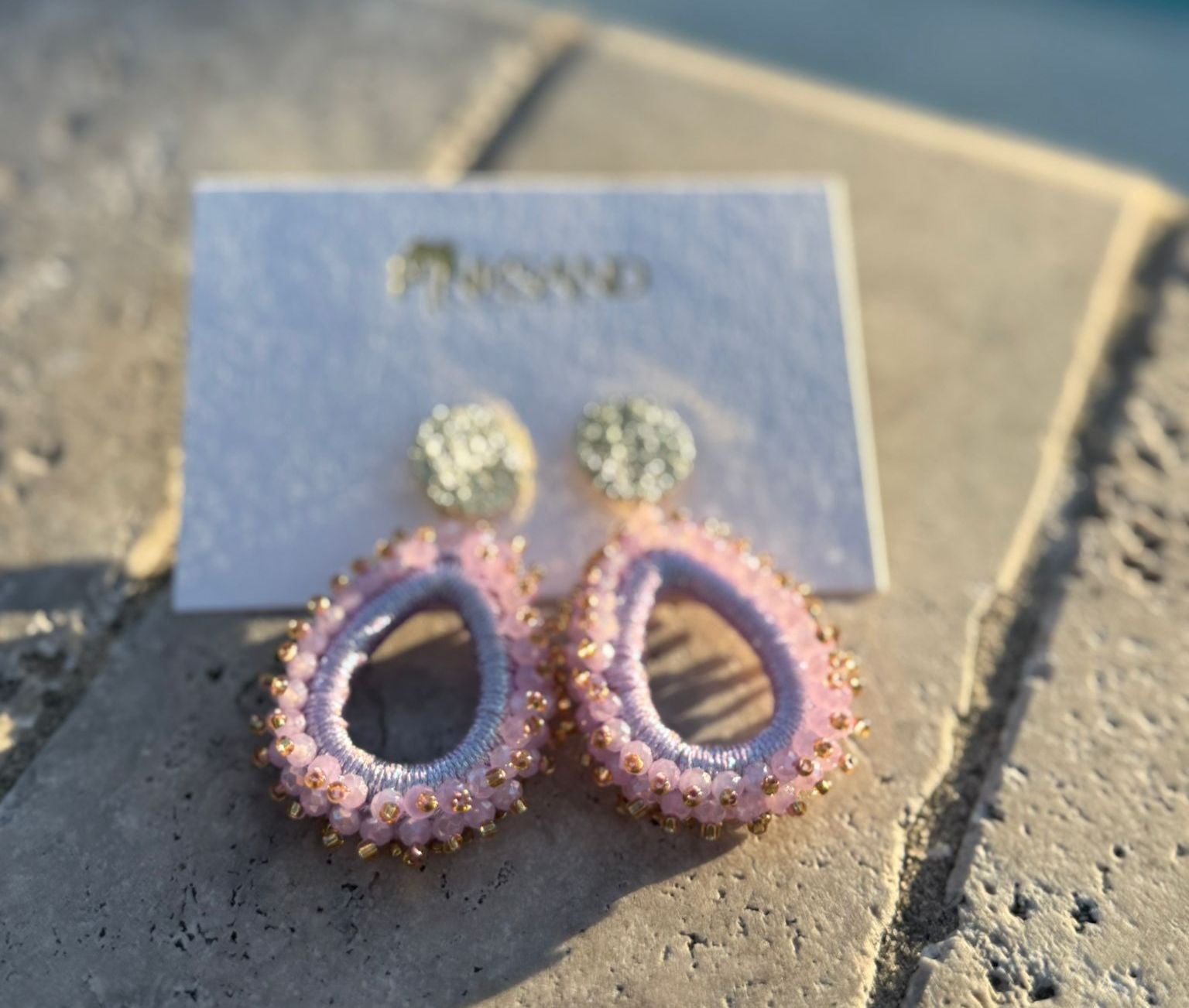 Step into a world of tropical elegance with the Tropic Allure Earrings. These delicate teardrop-shaped earrings feature a soft lavender woven center, bordered by shimmering pink beads that catch the light beautifully. The earrings are topped with a gold-tone glitter disc, adding a touch of glamour and creating a look that's both refreshing and chic. Perfect for adding a splash of color and sophistication to any outfit, these earrings are your ideal accessory for warm, breezy evenings and daytime adventures alike.